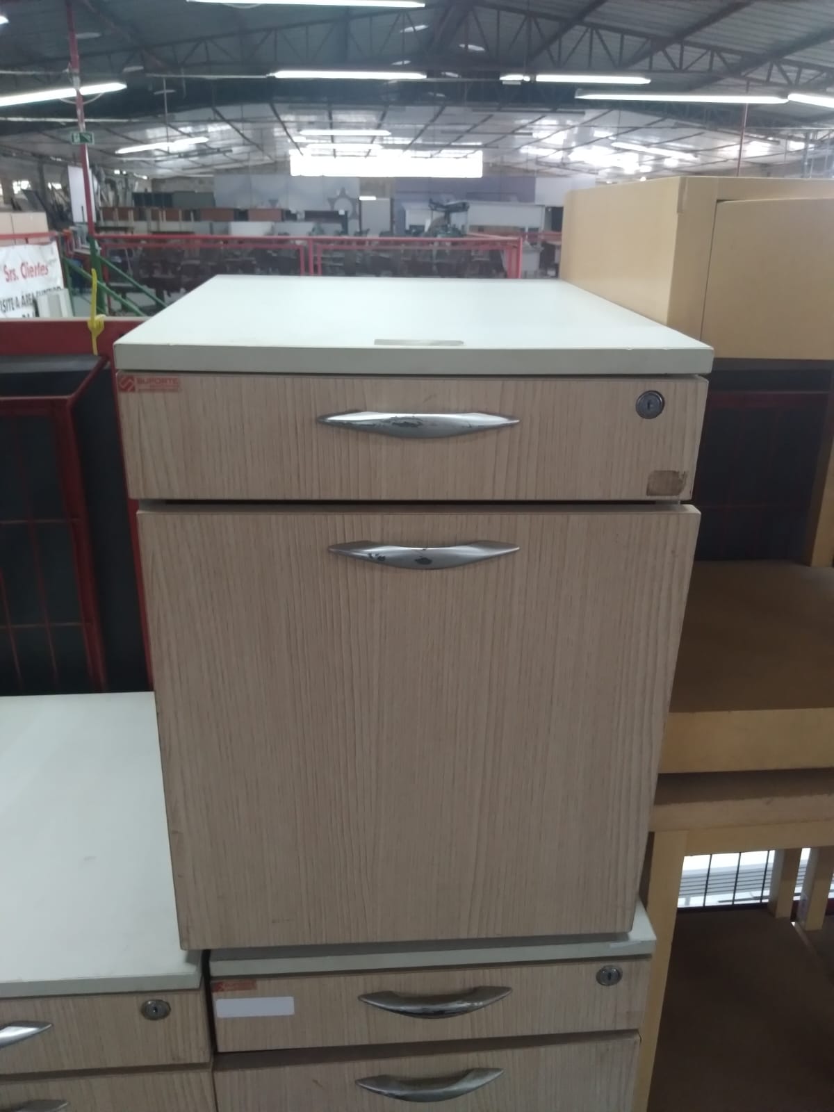 Gaveteiro bege com gavetas de pasta suspensa